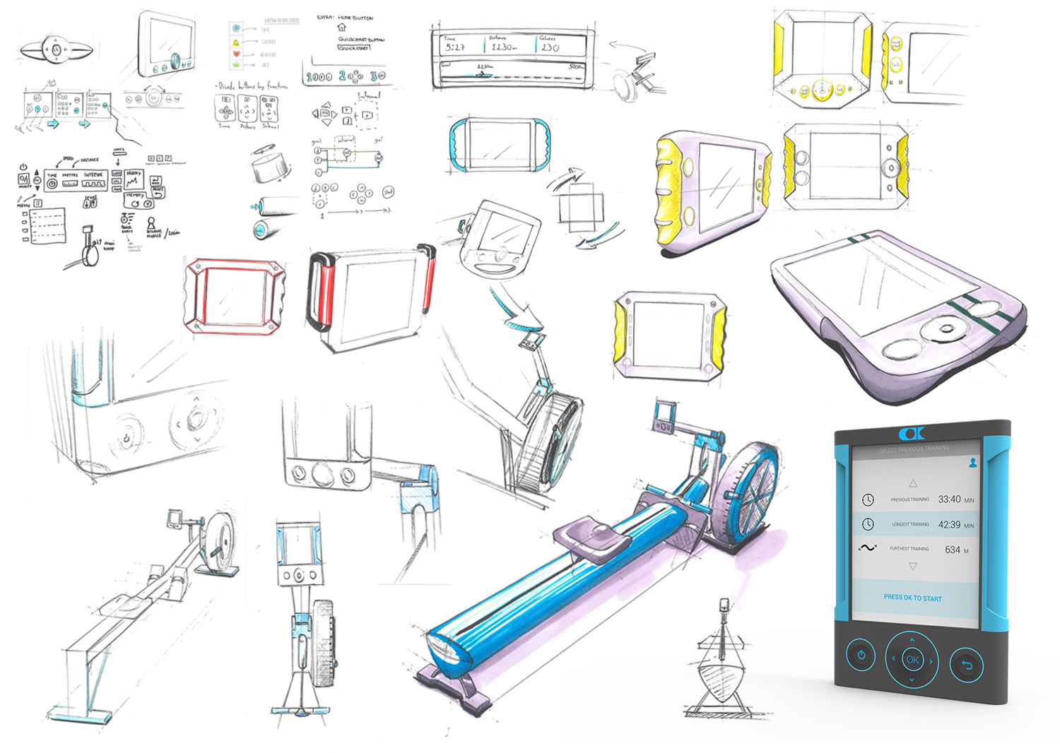 Blue Line is a rower monitor designed to be more inviting and motivating that current options on the market. It aims to invite novice users to explore indoor rowing and challenge themselves to give more.