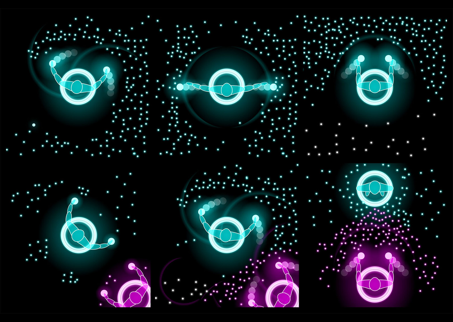 From the very beginning, people empower naturally their unknown skill: their attraction. A curious experience at the beginning turns later into a natural game that goes from moving particles to a particles-war against each other.