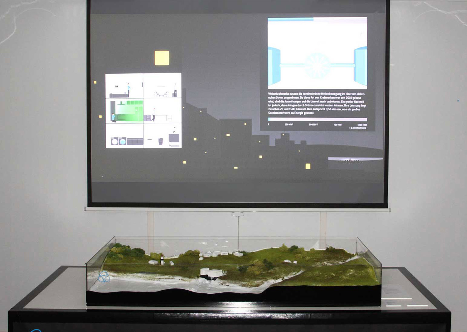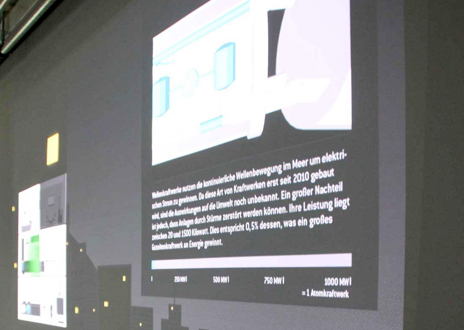A simple brick works as interface, playing the role of a tidal, river or wave power plant. Through experimentation the user explores how the different power plants work, how much energy do they produce and how do they affect people’s lifestyle and environment.